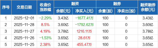 川金诺:融资净偿还1677.41万元,融资余额3.43亿元(12-01)