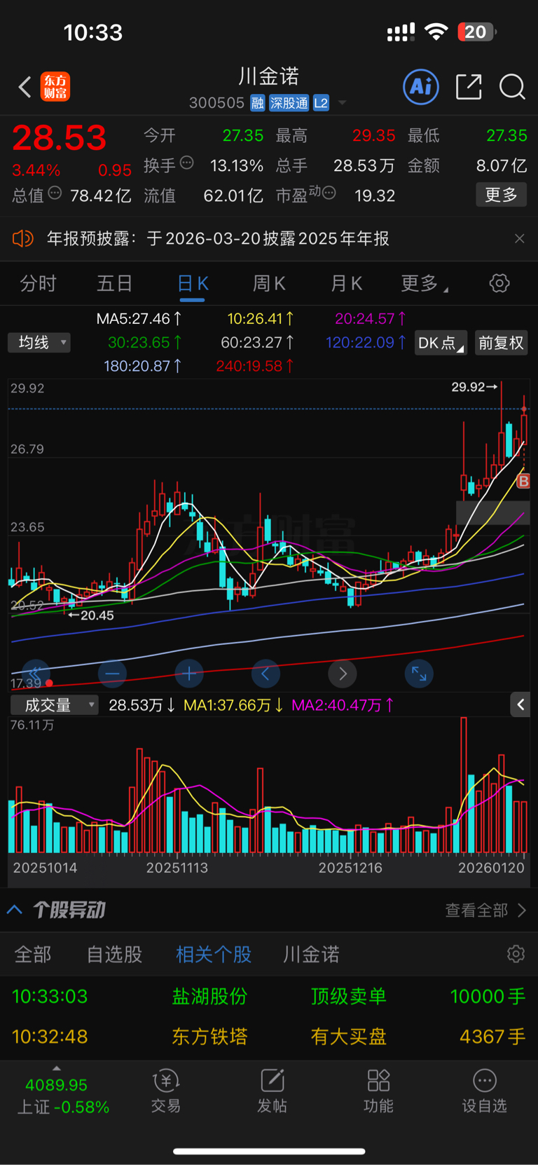 手速快了,忘记看他历史k线了,这lj全是冲高回落的大天线,压根没涨停了,明天开盘