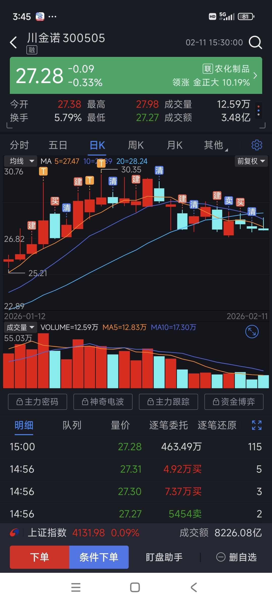 $川金诺(SZ300505)$ 昨天已清仓了