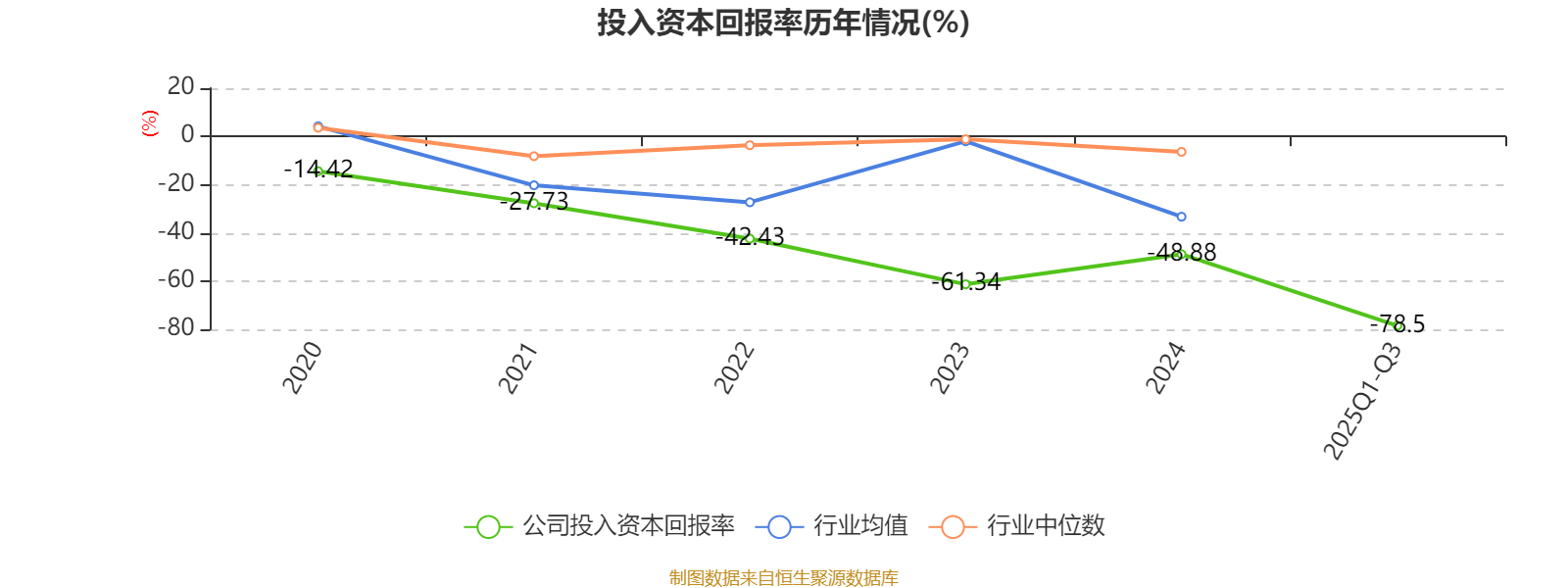 公司2025年前三季度投入资本回报率为-78.5%,较上年同期下降70.97个百分点。