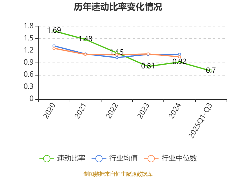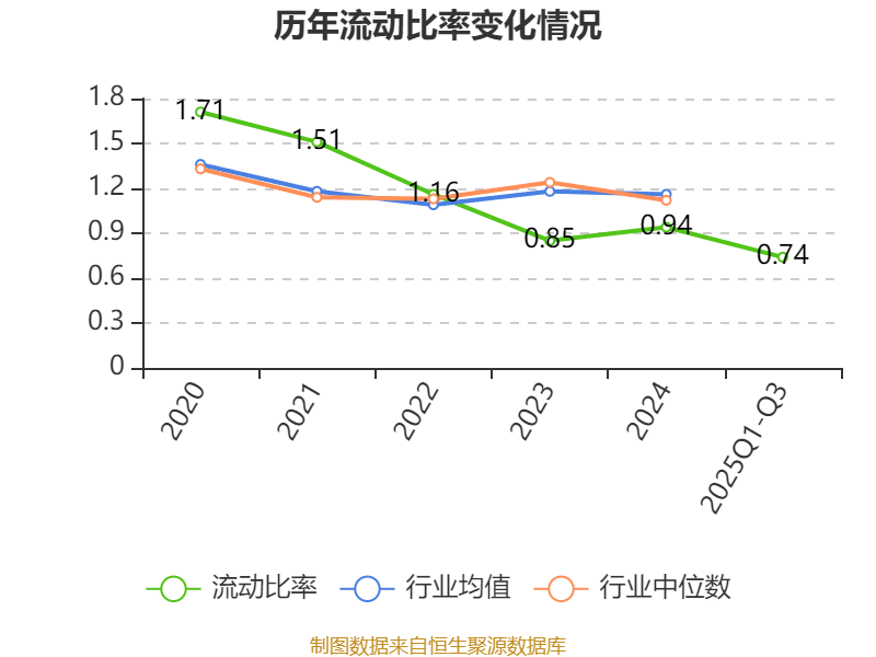 2025年前三季度,公司流动比率为0.74,速动比率为0.7。
