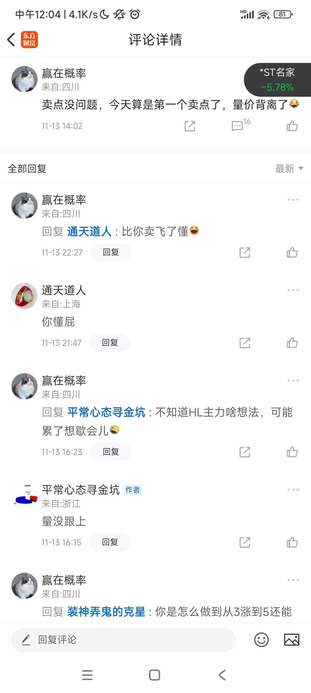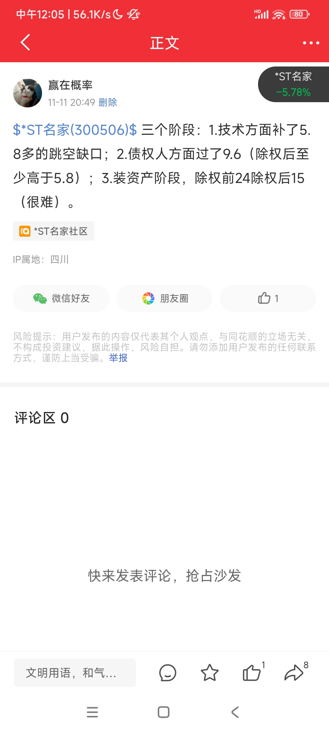 $*ST名家(SZ300506)$ 昨天就说了昨天是第一个卖点没什么问题,当然不同人有不同的交易模式,我还是选择满仓继续观察。就早上这种急杀没巨量没换手是吓不走我的。
