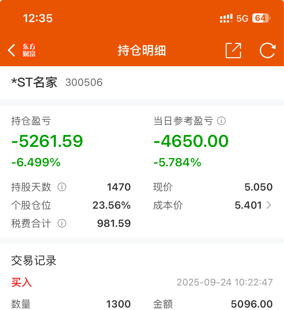 $*ST名家(SZ300506)$ 拿4年,昨天总盈亏是红的,没卖,准备又套我四年?