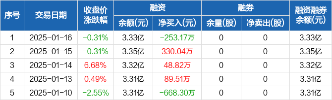 苏奥传感:融资净偿还253.17万元,融资余额3.33亿元(01-16)