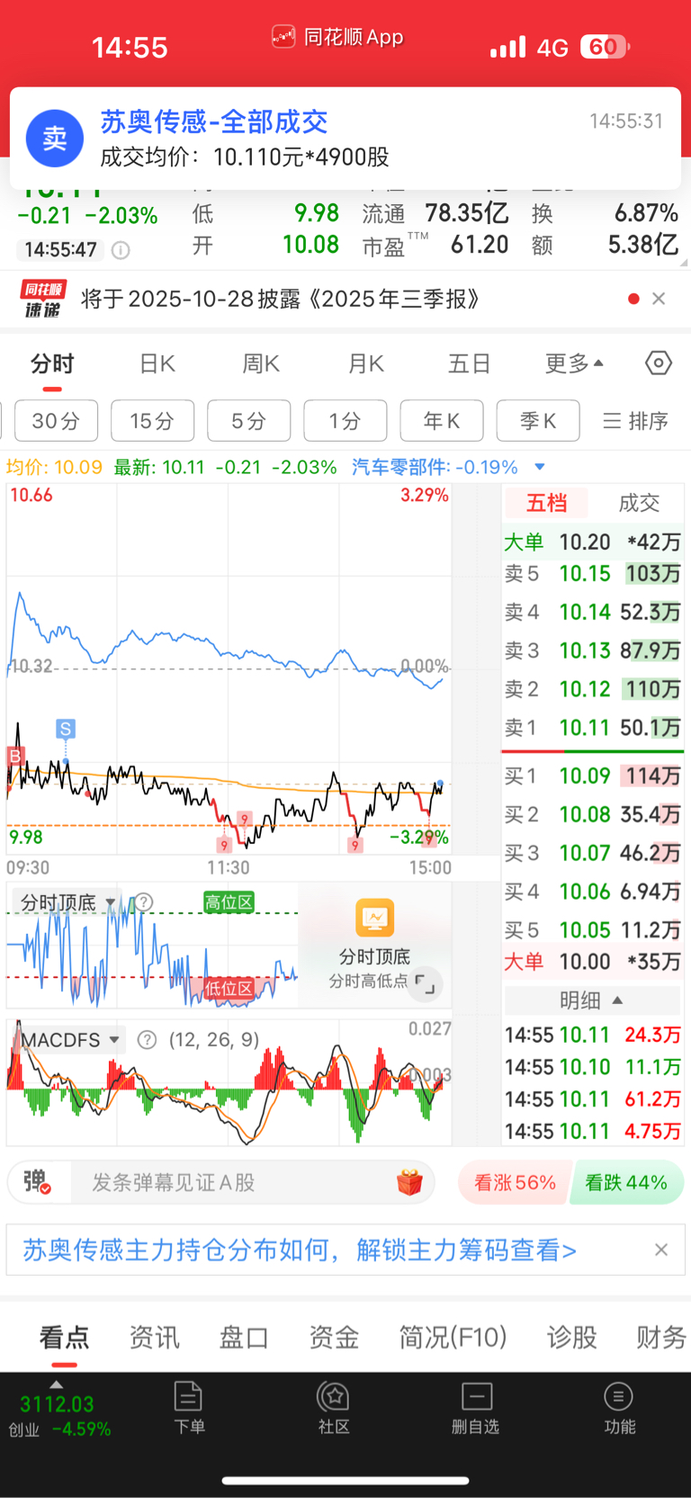 $苏奥传感(SZ300507)$ 算你狠!昨天只减仓了1/10,今天T了两百块钱