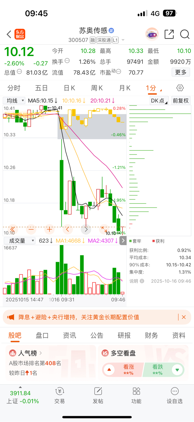 $苏奥传感(SZ300507)$ 分时线,不留活口全是大绿柱强硬出货,毫无买单