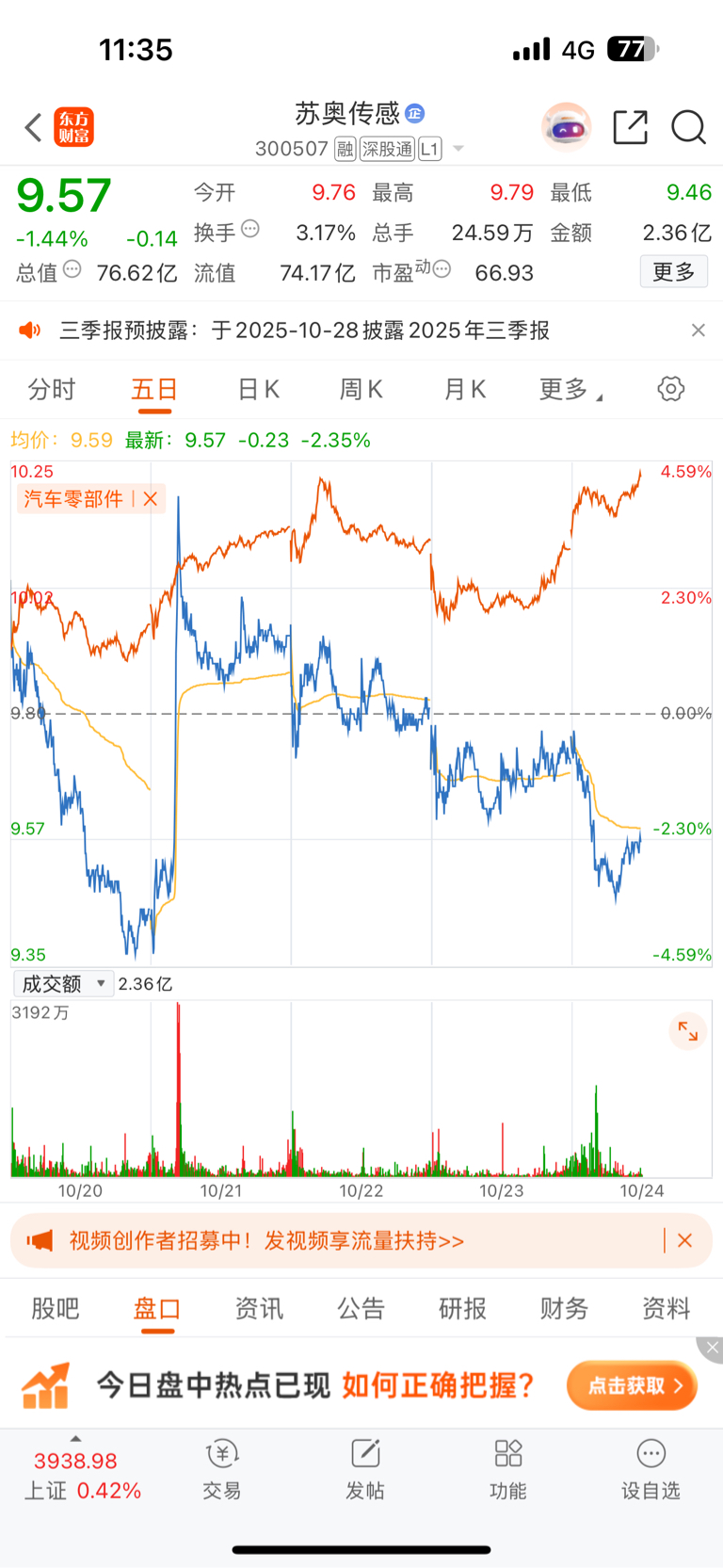 $苏奥传感(SZ300507)$ 这周板块涨了4.6个点,它跌了-2.3个点,大牛股!!!