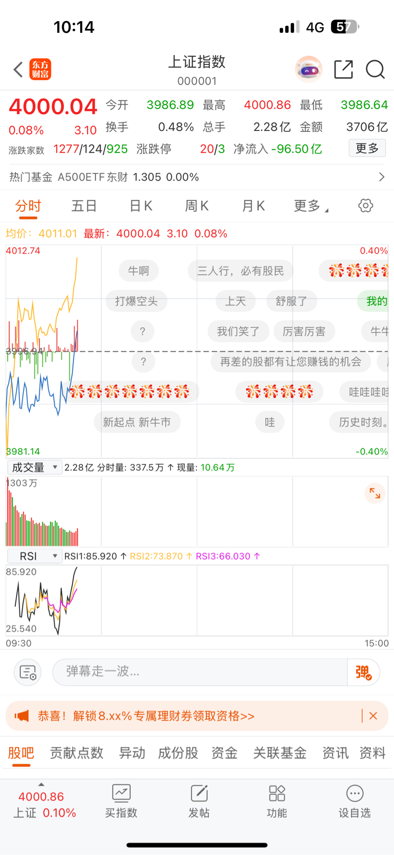 恭喜苏奥的散户,因为大盘4000点了,可喜可贺