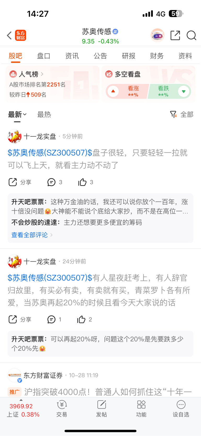 $苏奥传感(SZ300507)$ 看来狗子们又出动了哦,又跌出人气来了