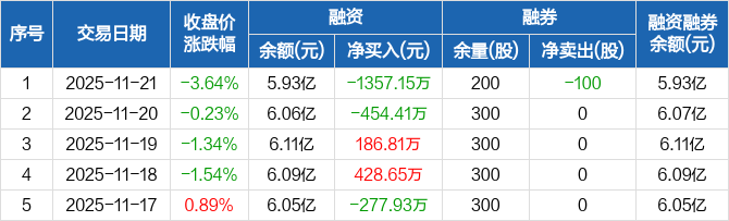 苏奥传感:融资净偿还1357.15万元,融资余额5.93亿元(11-21)