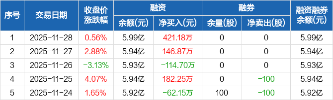 苏奥传感:融资净买入421.18万元,融资余额5.99亿元(11-28)