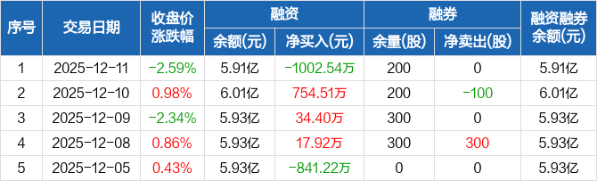 苏奥传感:融资净偿还1002.54万元,融资余额5.91亿元(12-11)