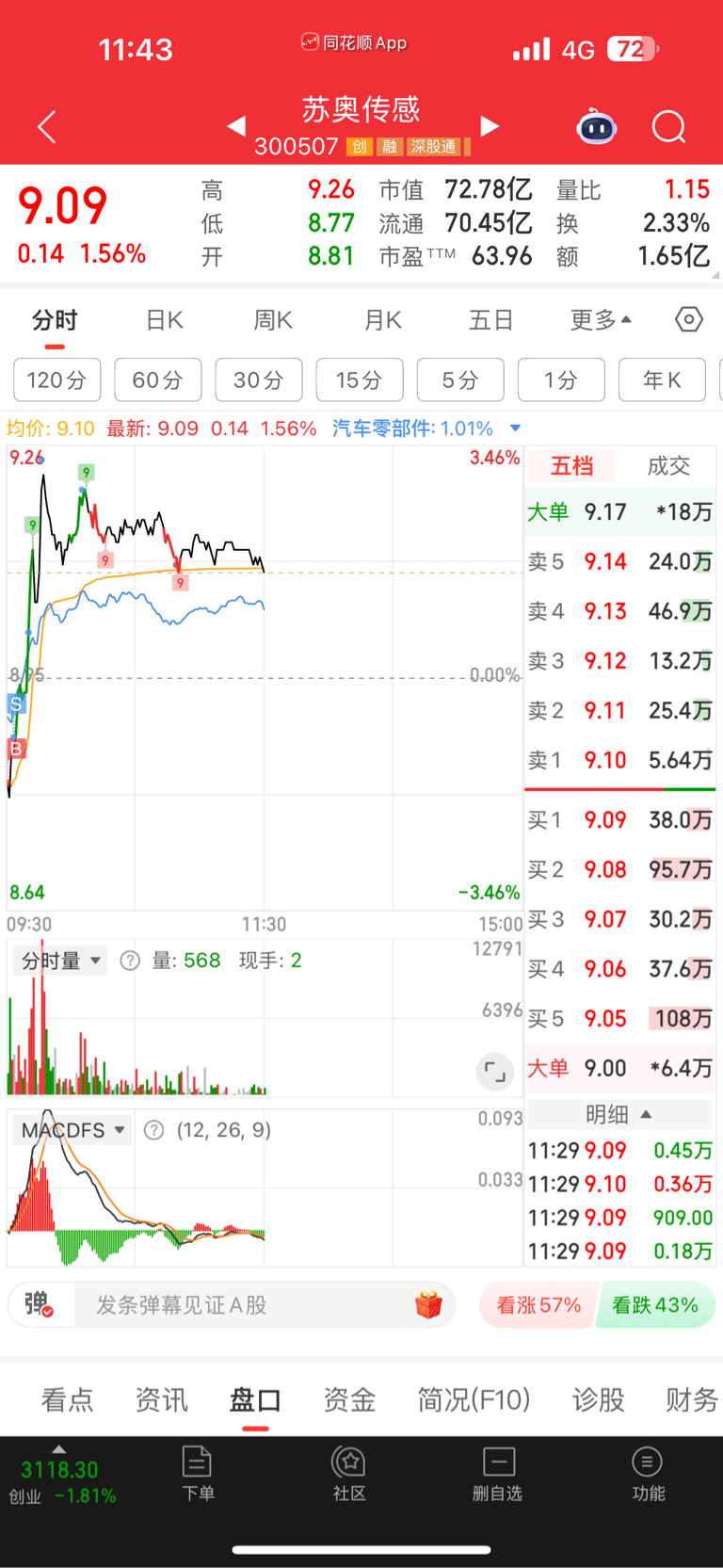 $苏奥传感(SZ300507)$ 板块涨1.3个点你最高3个点,板块回落0.3个点你就跌1.5个点