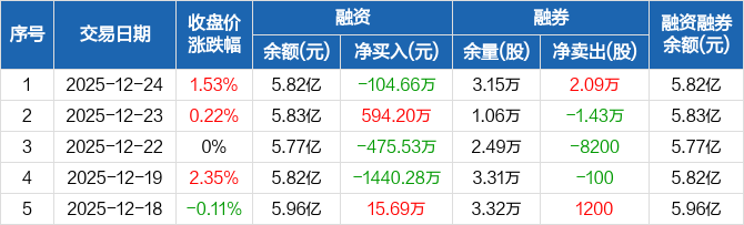 苏奥传感:融资净偿还104.66万元,融资余额5.82亿元(12-24)