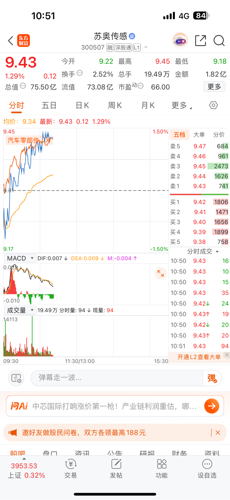$苏奥传感(SZ300507)$ 厉害厉害,大牛股,今天还比板块强了0.01个点