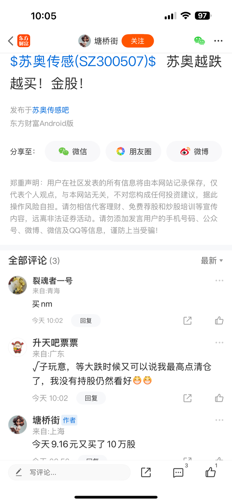 $苏奥传感(SZ300507)$ 都是一样伎俩,从来不敢晒交割单,连个买入点也不敢!倒是天天喊买了几十万几十万股,跌了就说自己前面最高点清仓,最低点抄底,要么就是我最高点清仓了不过仍然看好