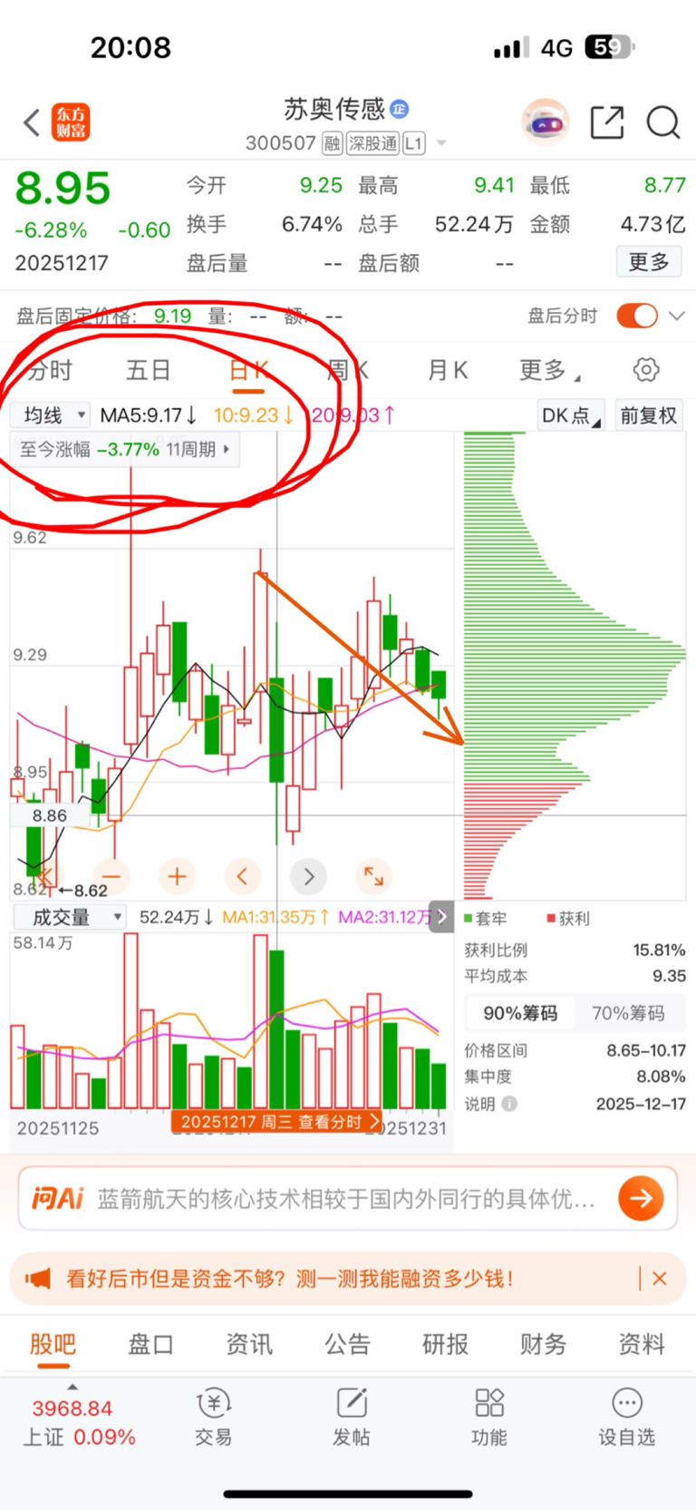 上证指数从12.17号那天到现在涨了3.77%,苏奥刚好跌了3.77%