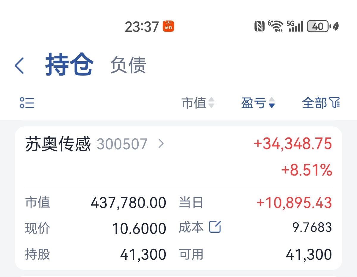 $苏奥传感(SZ300507)$ 创历史新高。没动。