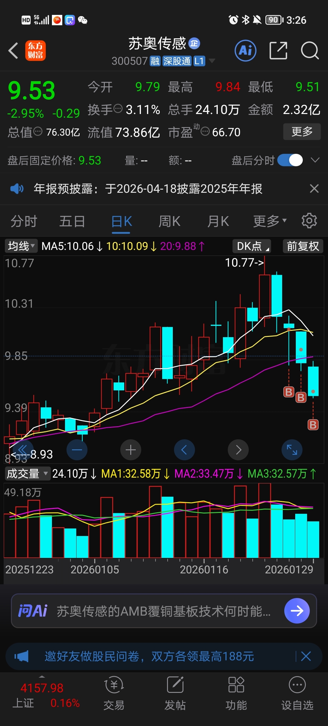 $苏奥传感(SZ300507)$ 又上一当,根本补不过来!