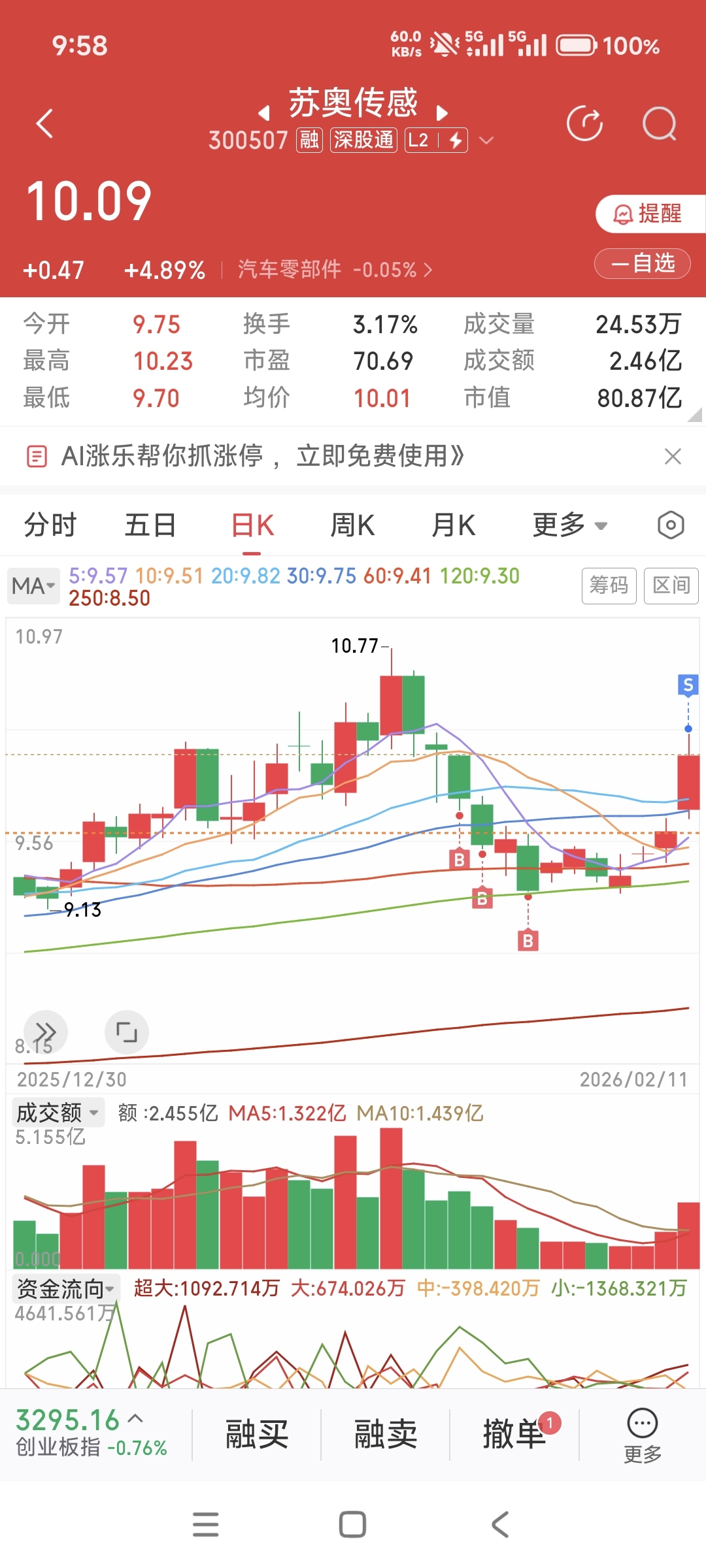 $苏奥传感(SZ300507)$ 卖了,留下的兄弟发财