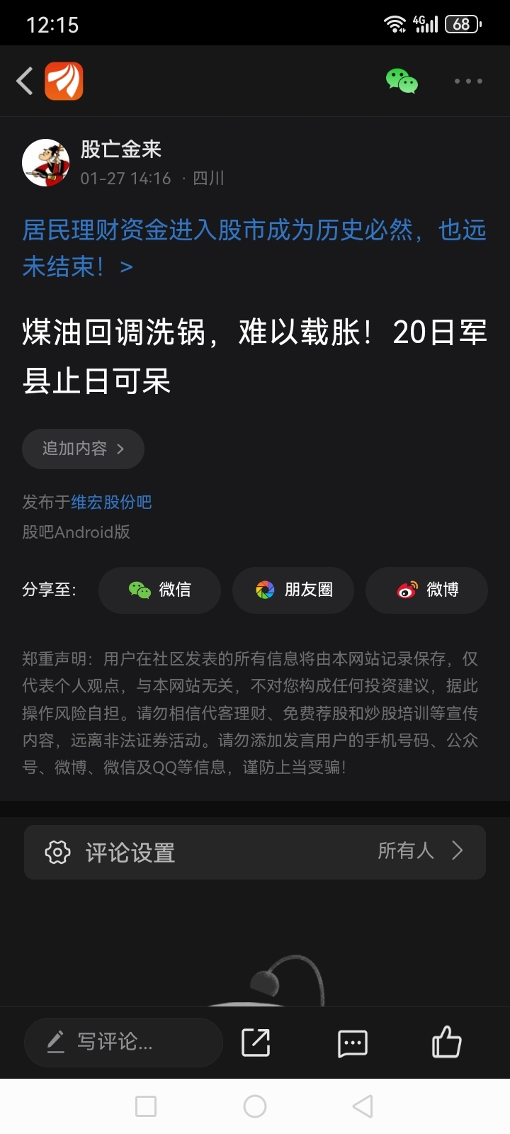 温馨提示: 1.根据《证券法》规定,禁止编造、传播虚假信息或者误导性信息,扰乱证券市场;2.用户在本社区发表的所有资料、言论等仅代表个人观点,与本网站立场无关,不对您构成任何投资建议。用户应基于自己的独立判断,自行决定证券投资并承担相应风险。《东方财富社区管理规定》