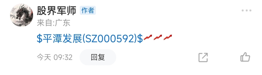 $平潭发展(SZ000592)$ 早盘介入平潭也是成功冲高走强了趋势还是不错的下午有望冲回五日均线