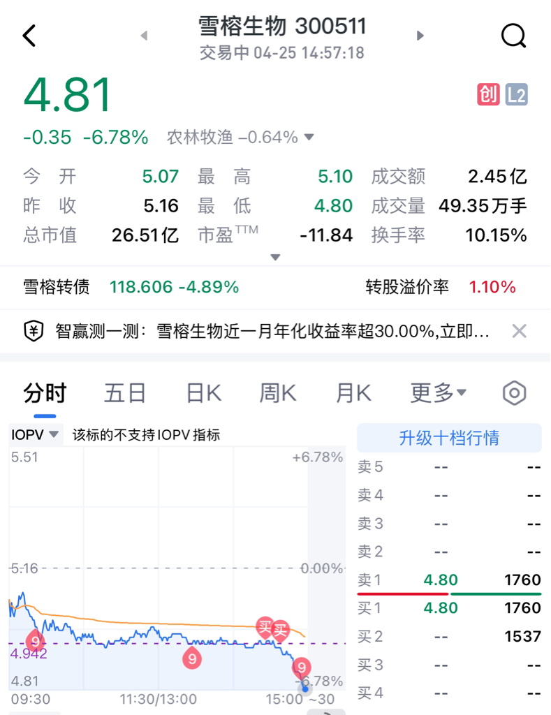 $雪榕生物(SZ300511)$ 都怪我