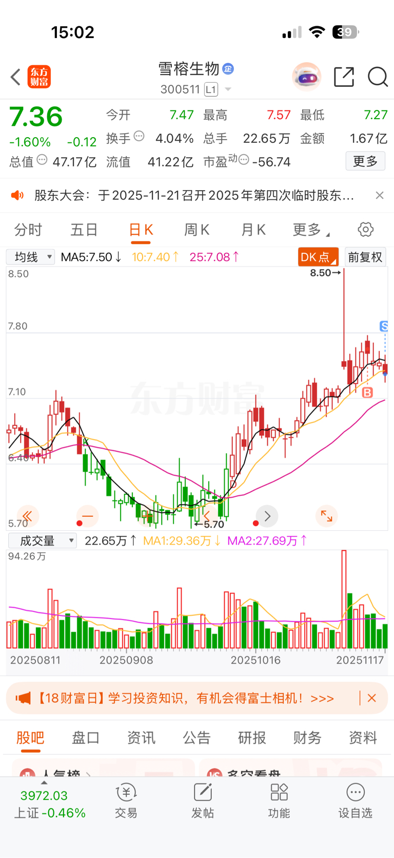 $雪榕生物(SZ300511)$ 受不了了,儿