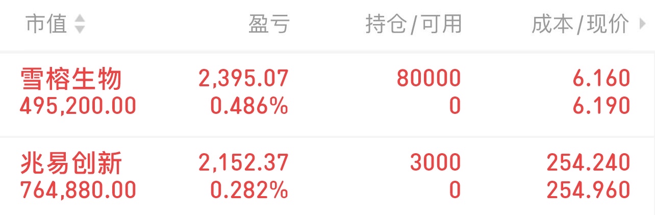 $雪榕生物(SZ300511)$ $兆易创新(SH603986)$ 入了,明天冲高就走
