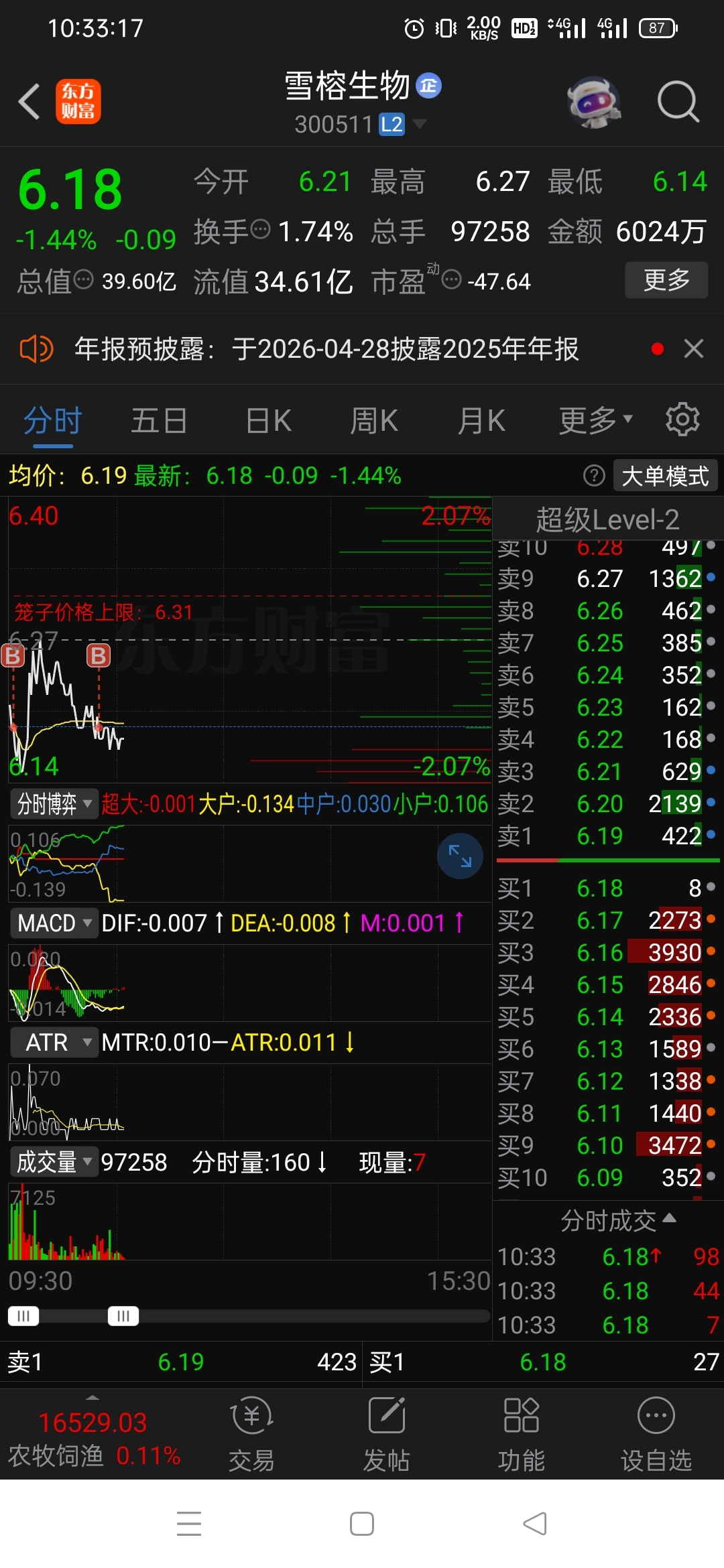 $雪榕生物(SZ300511)$ 这股吧戾气依然是那么重啊,看多就喊是拖。我买进就是看好它博它涨,不然买它干毛!大家能投资的都是成年人了,做出了选择涨跌是很正常,盈亏自负,戾气那么重……承受不住你干毛投资啊,今天依然进点货,嘿嘿