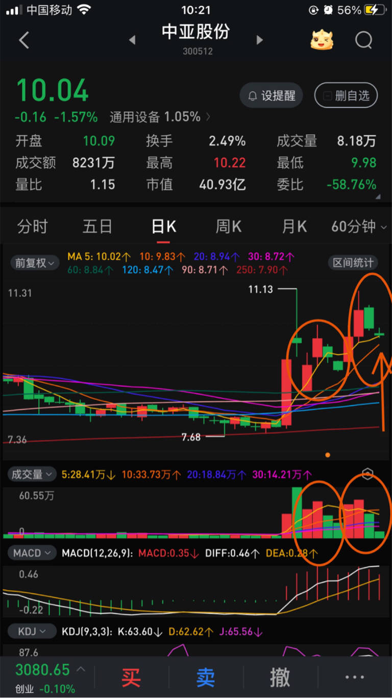 $中亚股份(SZ300512)$ 有脑的人会看!没脑的够只会汪!缩量洗盘!趋势都没坏!支撑位10.02-9.83。放量涨,缩量洗!