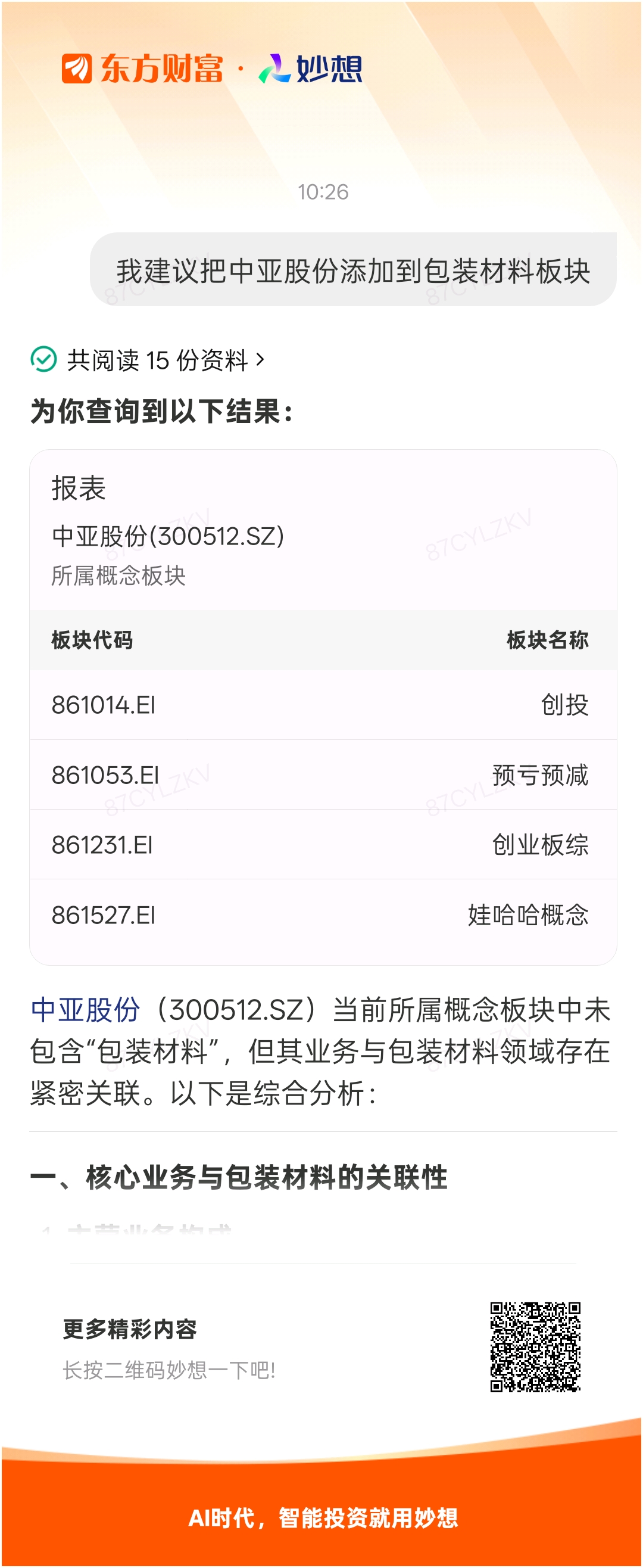 #@妙想,你怎么看?# 妙想一下:我建议把中亚股份添加到包装材料板块
