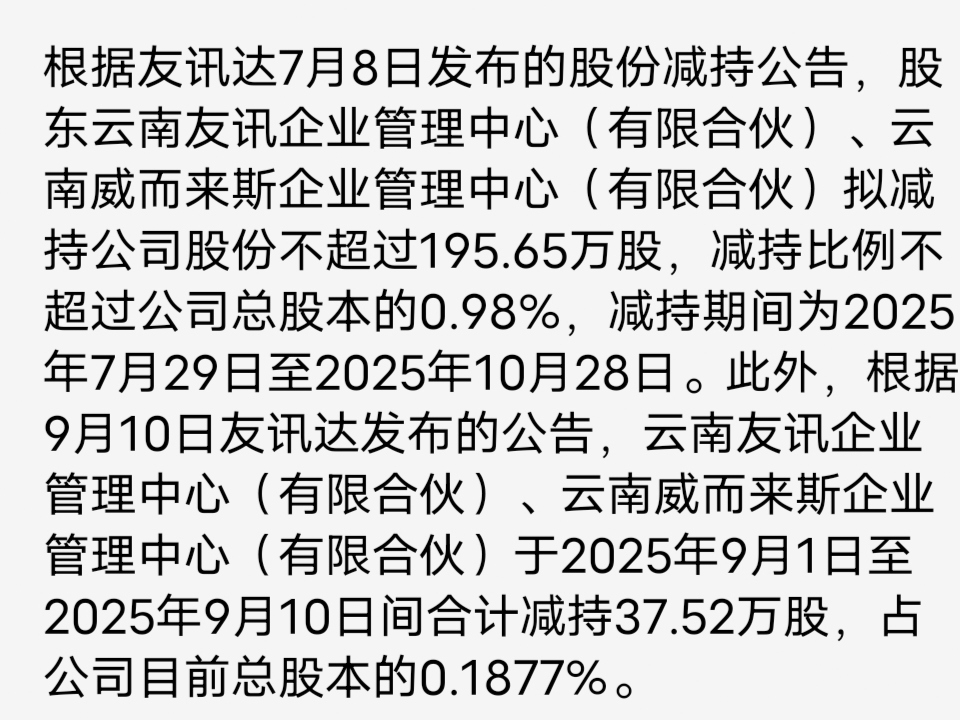 $友讯达(SZ300514)$ 擦, 减持没结束主力不会拉的!