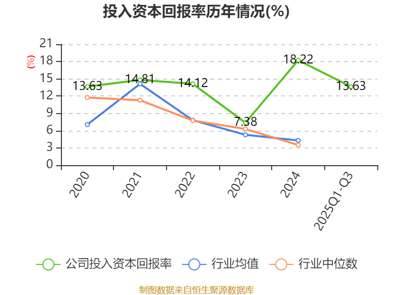 盈利能力方面, 2025年前三季度公司加权平均净资产收益率为14.49%,同比上升3.74个百分点。公司2025年前三季度投入资本回报率为13.63%,较上年同期上升3.27个百分点。