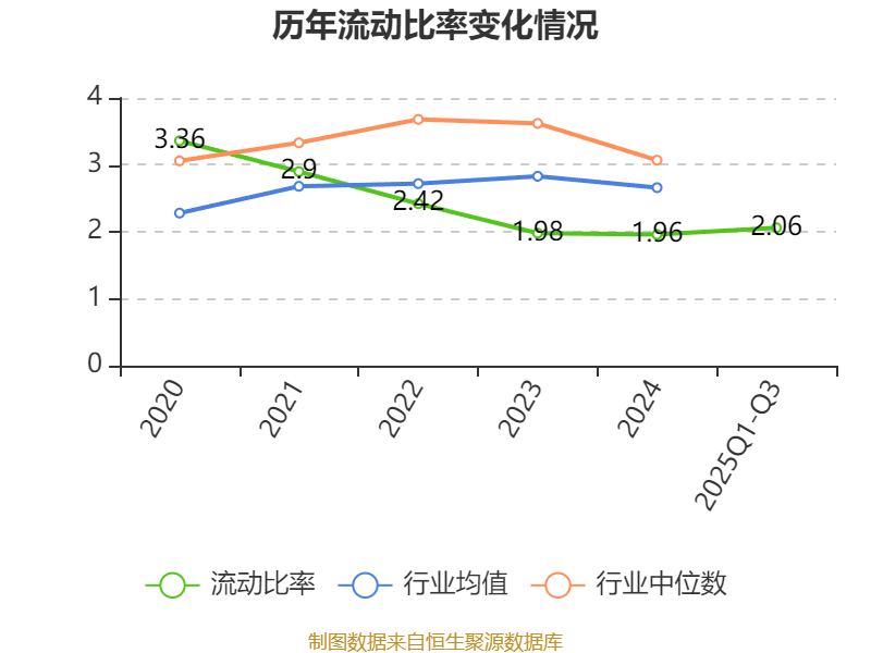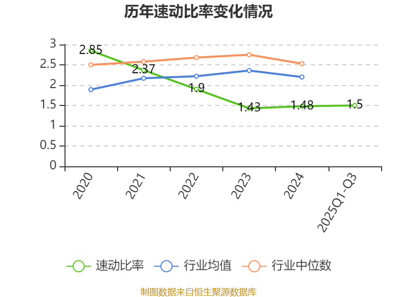2025年前三季度,公司流动比率为2.06,速动比率为1.5。