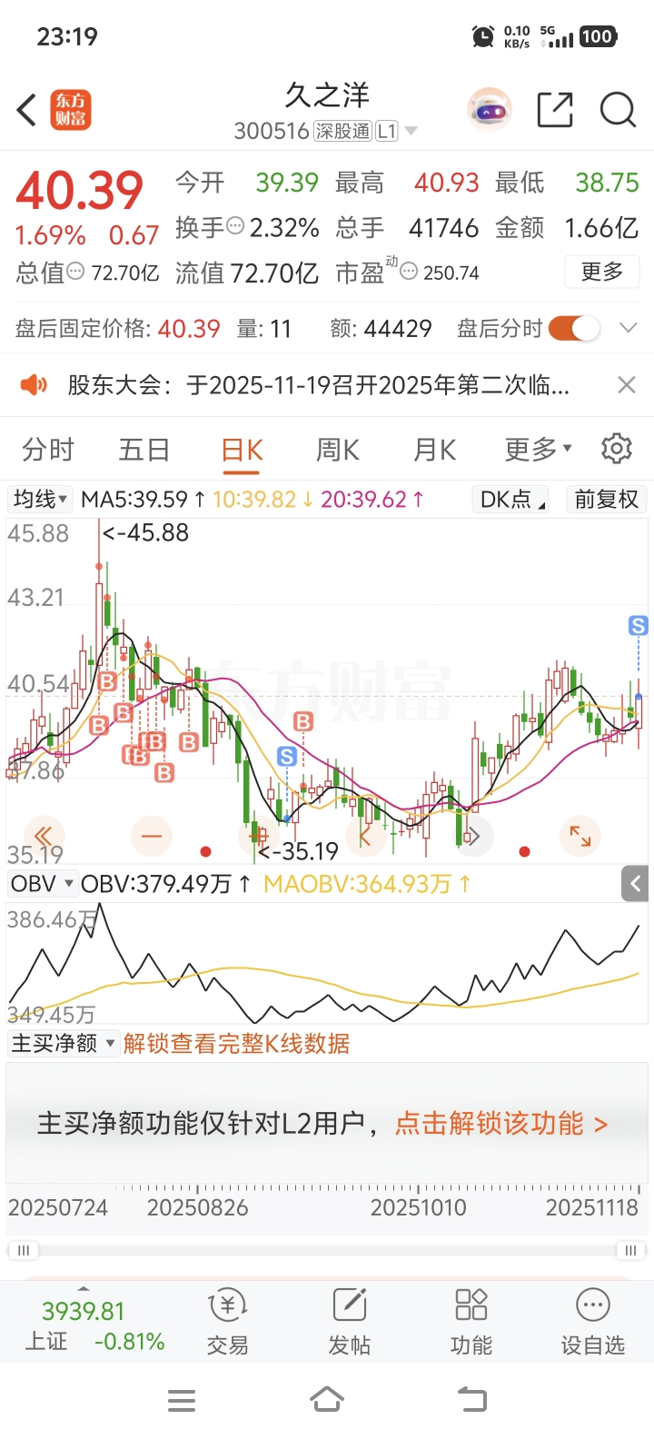 $久之洋(SZ300516)$ 真佩服我自己了,买在最高卖在最低,还好后来又买回来了,今天解套走了不知道是对是错啊,希望留下的都发财吧。