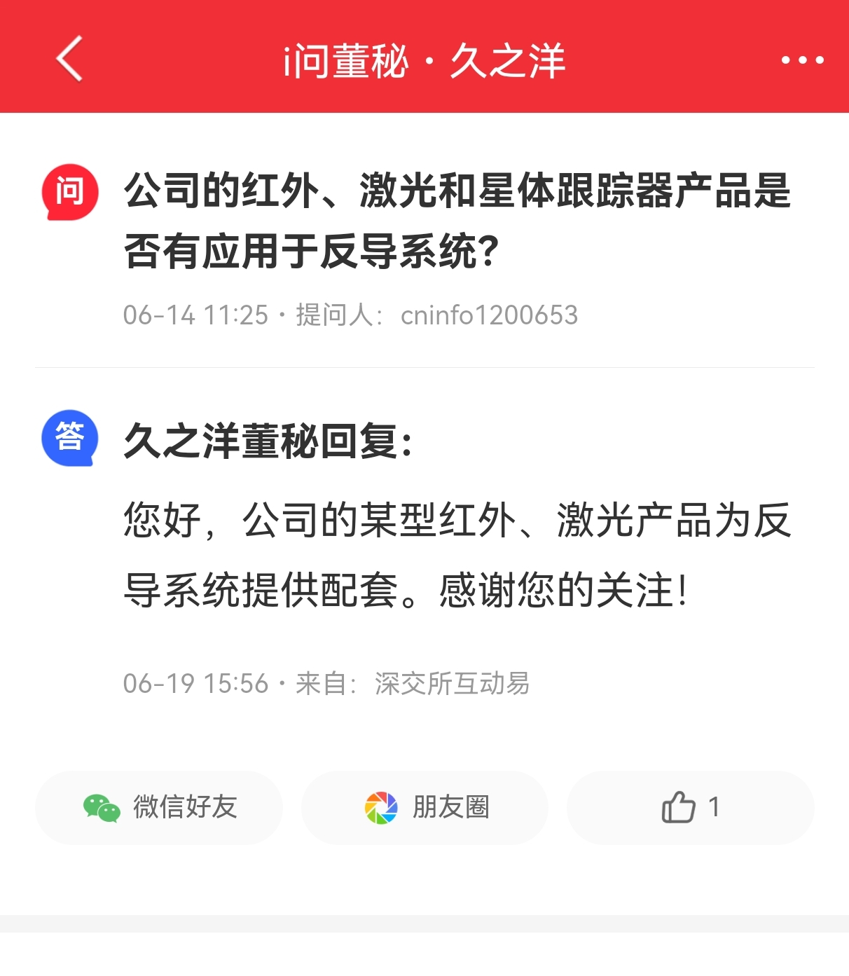 $久之洋(SZ300516)$ 久之洋的红外、激光产品为反导系统提供配套,星体跟踪器聚焦航天防务和商业卫星,产品涵盖海陆空天防御!