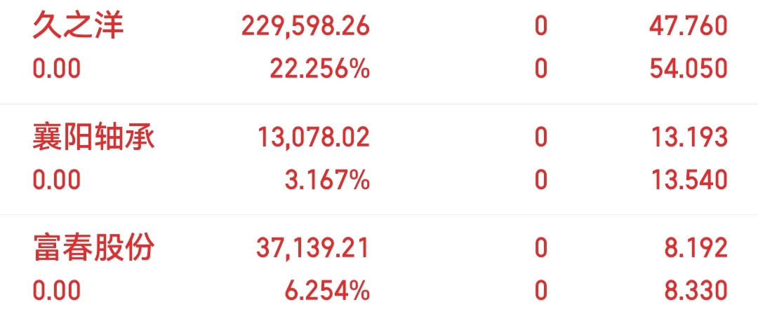 $久之洋(SZ300516)$ $襄阳轴承(SZ000678)$ $富春股份(SZ300299)$ 落袋为安