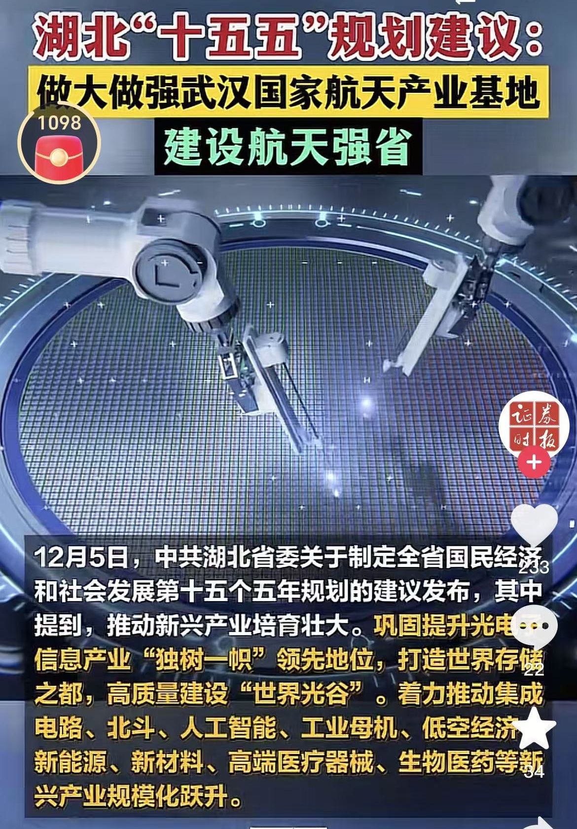 加油吧,湖北“十五五”规划建议做大做强武汉国家航天产业基地靠你啦