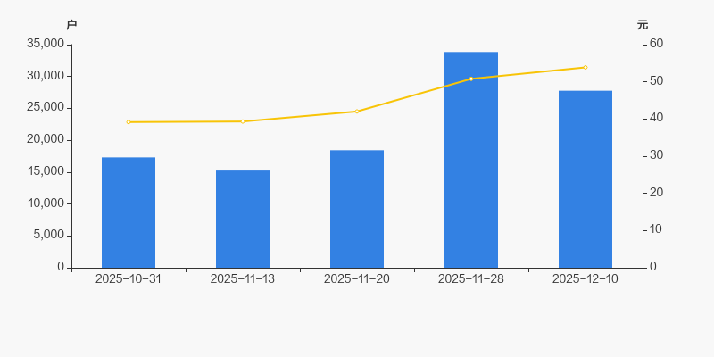 2025年10月31日至今,公司股东户数显著大幅增长,区间涨幅达60.43%。2025年10月31日至2025年12月10日区间股价上涨37.55%。