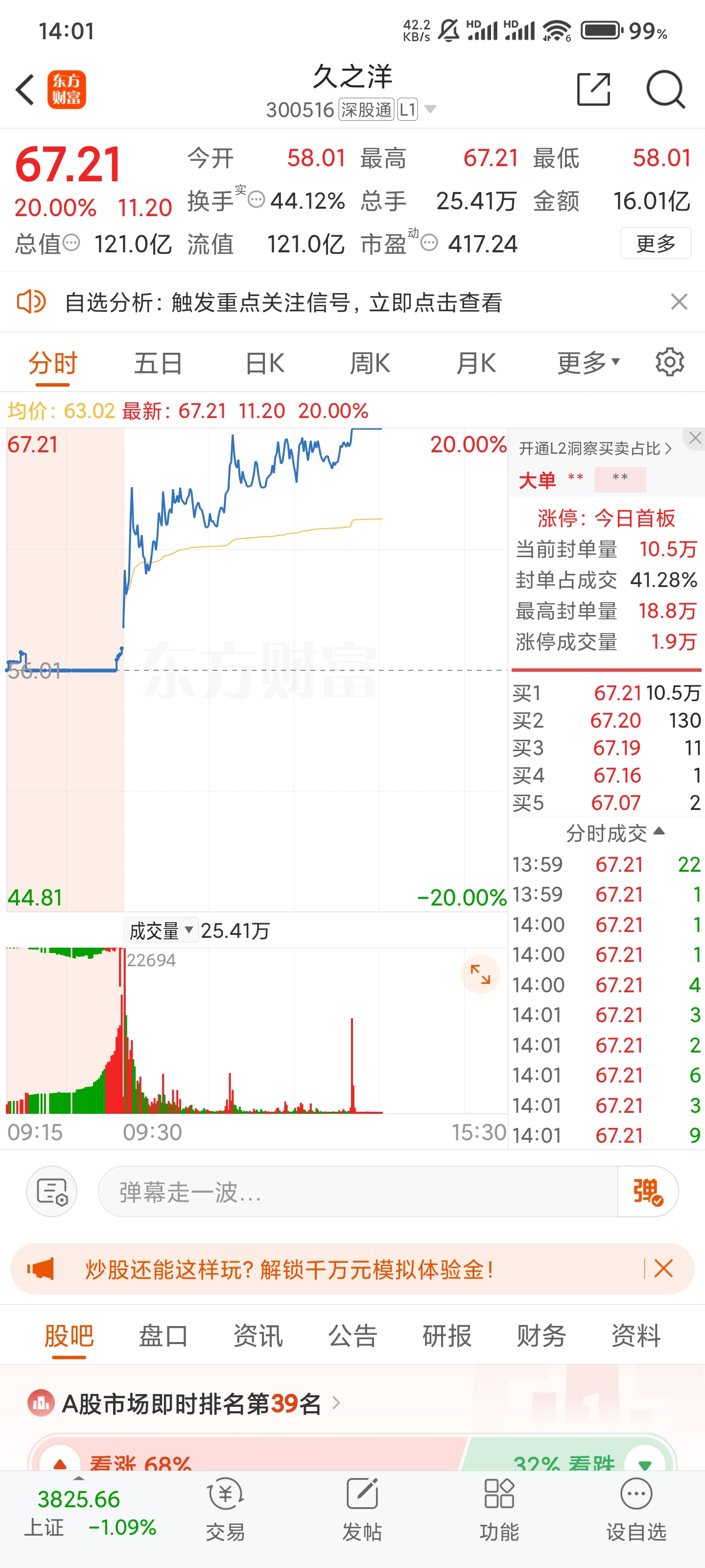 朋友们!今天选的$久之洋(SZ300516)$ 逆势盘中封板了!昨天炸板的$西测测试(SZ301306)$ 今天也大涨!怪我今天早上没搞好,不然大家久之洋能吃大肉!被套的朋友也不用太担心,目前行情不好,适当做做t,后面解套可以选择走