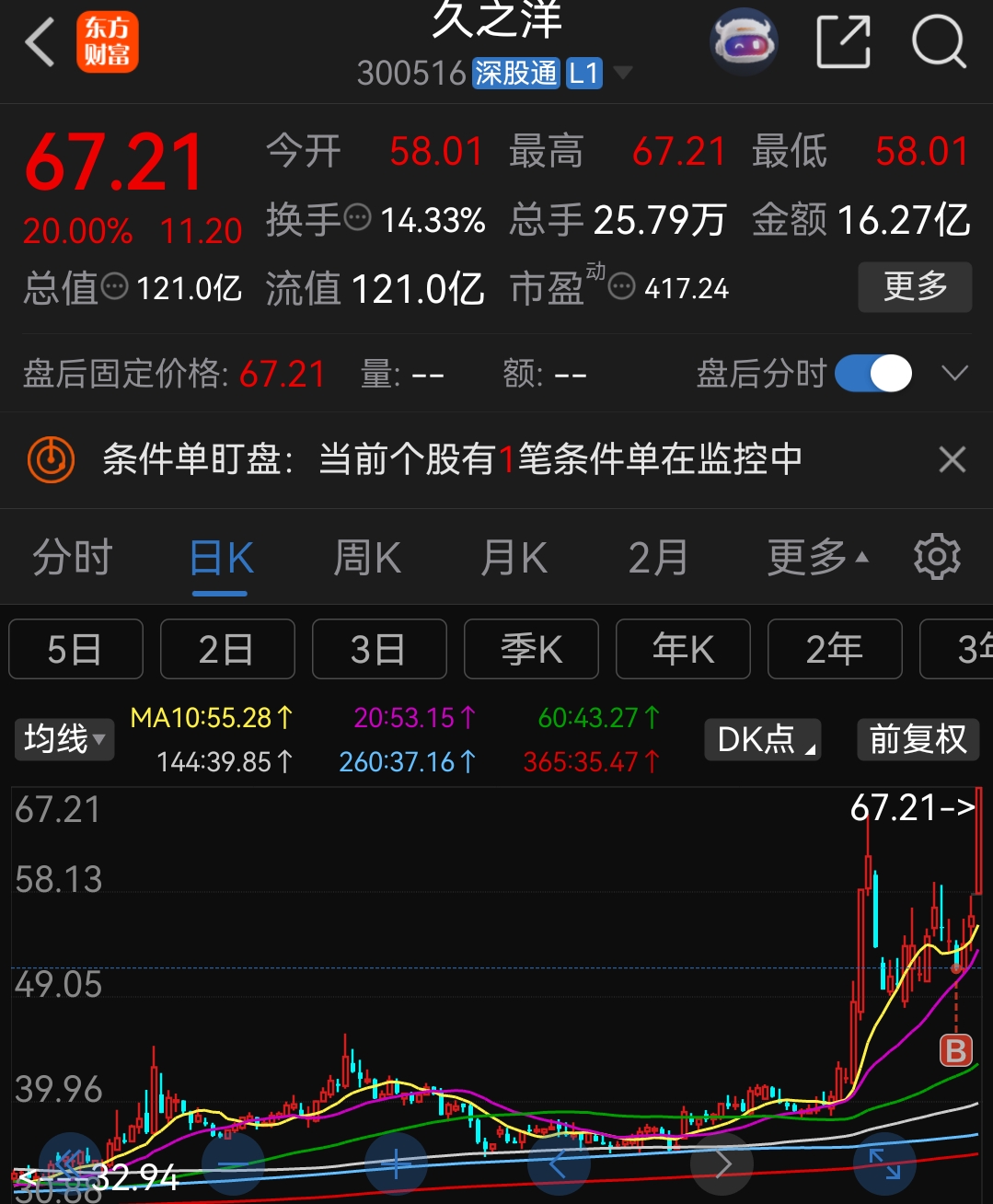 $久之洋(SZ300516)$ 四十多没买,五十多追高