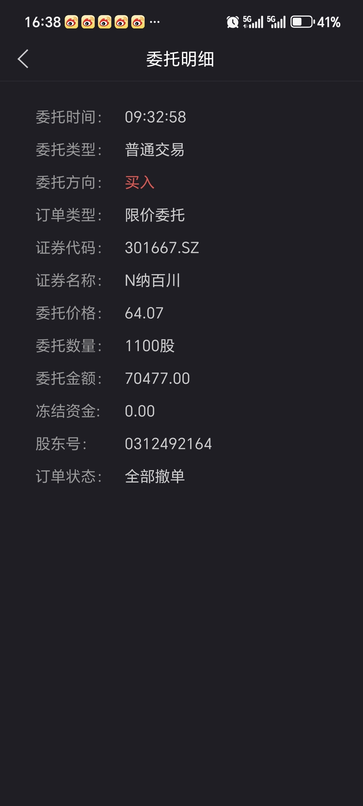 财运跟人,既来之则安之,今早卖了海峡创新,想买纳百川,结果64多点没成交,撤单了