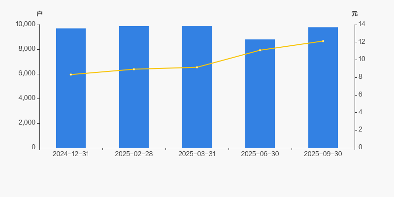 截至2025年9月30日,公司最新总股本为2亿股,其中流通股本为1.24亿股。户均持有流通股数量由上期的1.41万股下降至1.27万股,户均流通市值15.37万元。
