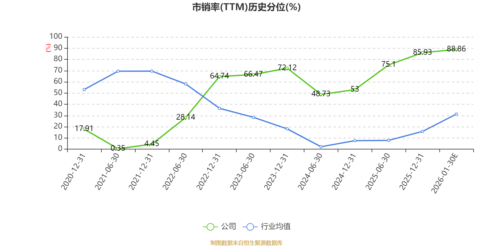 文中市盈率和市销率采用TTM方式,即以截至最近一期财报(含预报)12个月的数据计算。市净率采用LF方式,即以最近一期财报数据计算。三者的分位数计算区间均为公司上市以来至最新公告日。