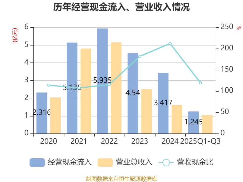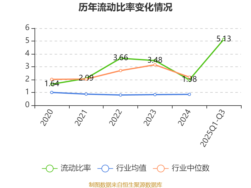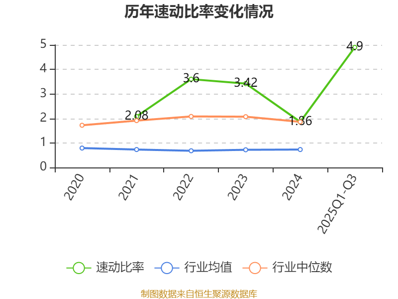 2025年前三季度,公司流动比率为5.13,速动比率为4.9。