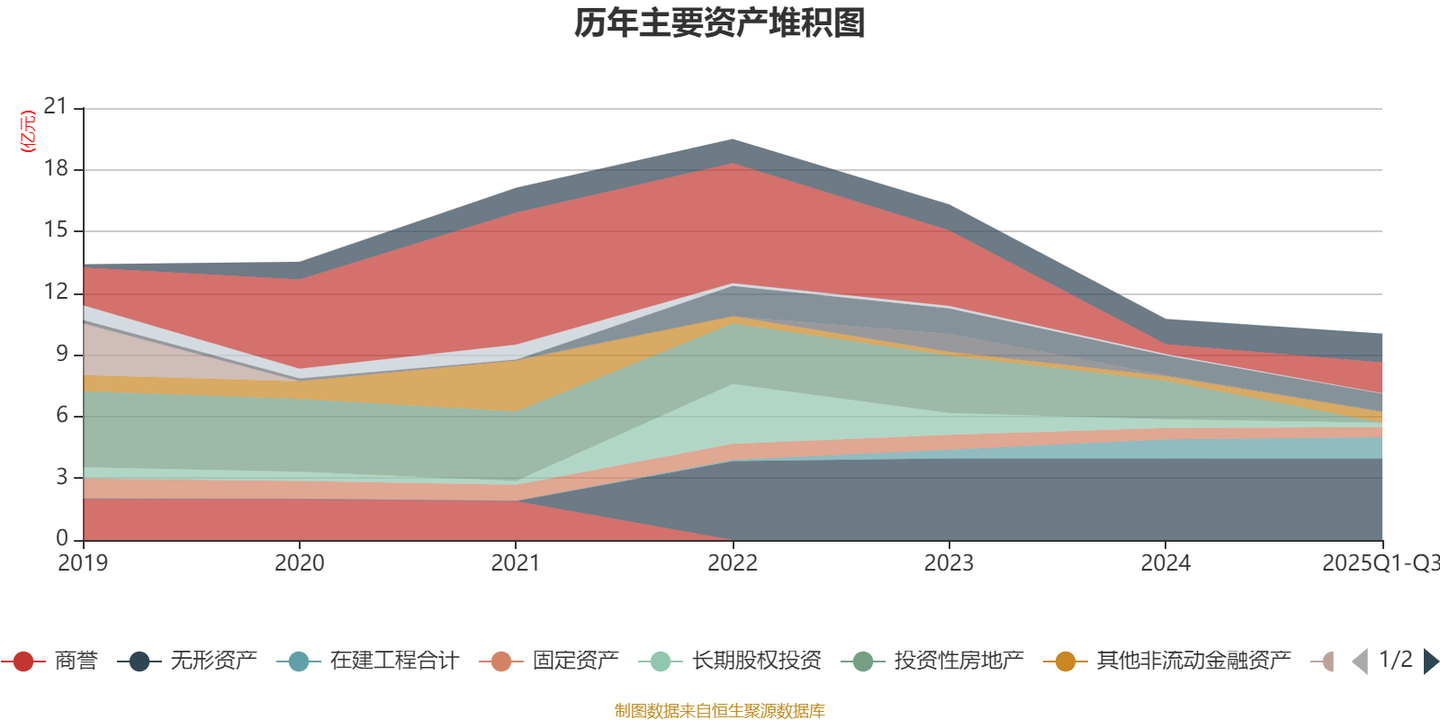 资产重大变化方面,截至2025年三季度末,公司投资性房地产较上年末减少100%,占公司总资产比重下降17.34个百分点;货币资金较上年末增加211.26%,占公司总资产比重上升10.48个百分点;其他非流动金融资产较上年末增加131.52%,占公司总资产比重上升3.17个百分点;无形资产较上年末减少0.06%,占公司总资产比重上升2.62个百分点。