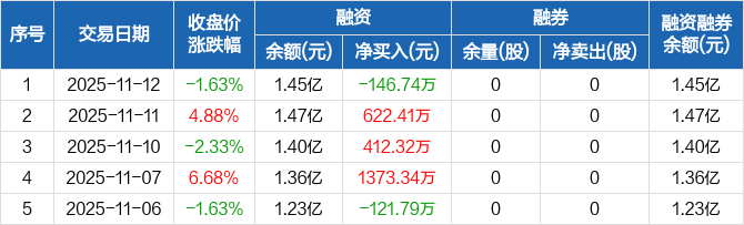 新迅达:融资净偿还146.74万元,融资余额1.45亿元(11-12)