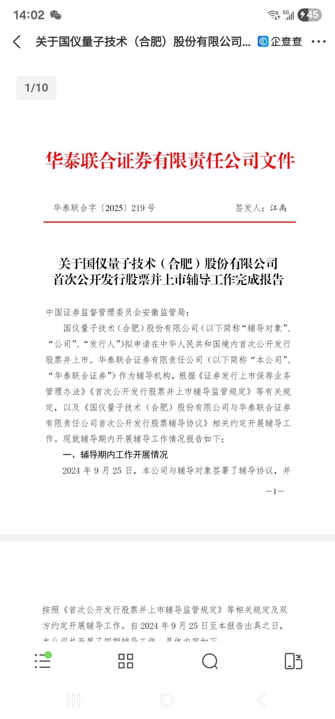 $科大国创(SZ300520)$ 怪不得今天这么坚挺,国仪量子上市辅导完成验收,接下来就是申请ipo了 单就收益起步3个多亿的收益 但如果国仪量子真对标国盾量子这部分的收益有可能十亿甚至数十亿,难道各位要等国仪量子上市公司了再来?和而泰可是在摩尔线程上市这一消息中不断上涨,那么科大国创本身就是ai量子科技的情况下未来估值几百亿也合情合理。