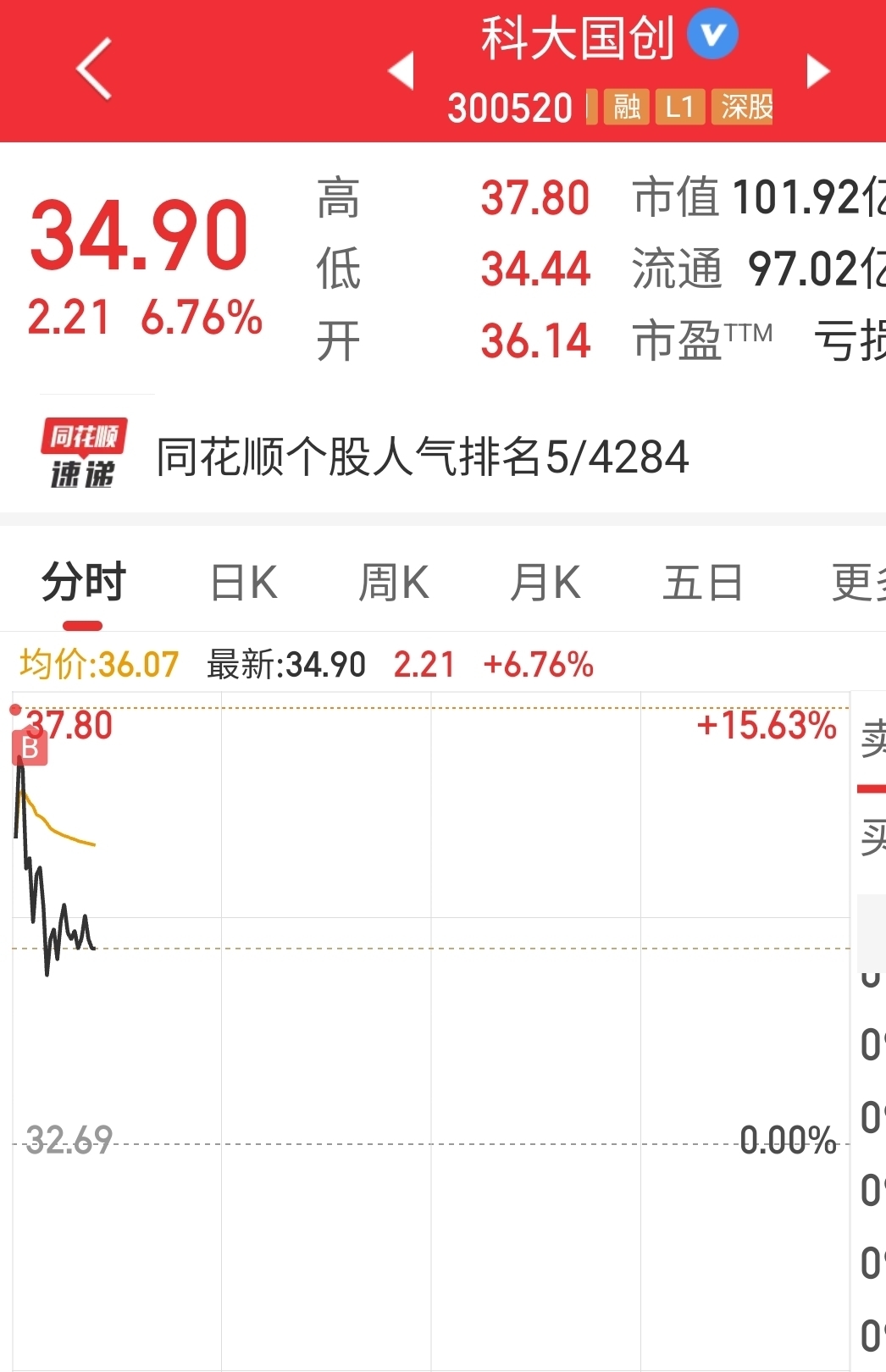 $科大国创(SZ300520)$ 今天我来搞排名第一的票了,只要我买进来就是最高点,不信的看我主页,有票的可以跑了,我去到哪里凉到哪里了,我主页全部是我的战绩,